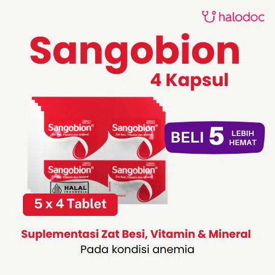 SANGOBION merupakan suplemen dengan kandungan zat besi dan vitamin lainnya. Obat ini biasa digunakan untuk mengobati anemia karena defisiensi zat besi dan mineral lain dalam sel darah.