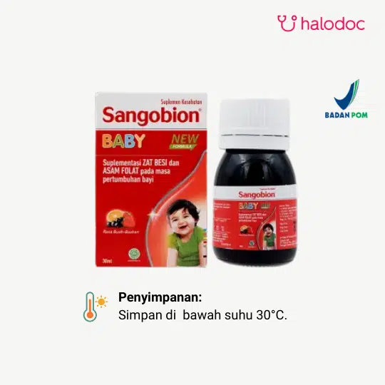 Sangobion Baby 30 ml adalah suplemen kesehatan dalam bentuk tetes (drop) untuk bayi, bertujuan untuk membantu memenuhi kebutuhan zat besi dan vitamin untuk keadaan anemia karena kekurangan zat besi.