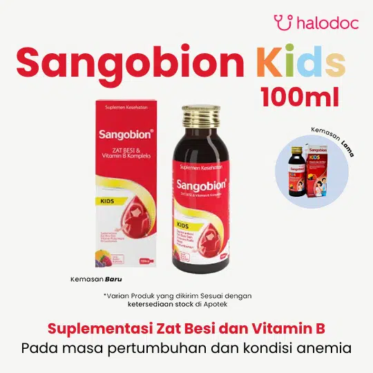 Sangobion Kids Sirup 100 ml adalah suplemen kesehatan dalam bentuk sirup untuk anak-anak, bertujuan untuk membantu memenuhi kebutuhan zat besi dan vitamin untuk keadaan anemia kekurangan zat besi.