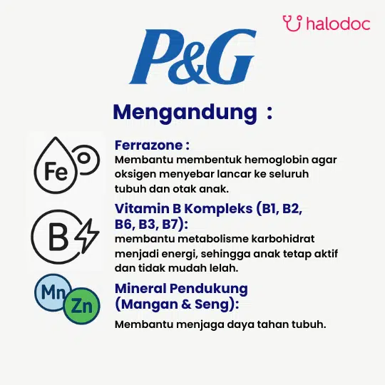 Produk ini mengandung zat besi untuk pembentukan hemoglobin (protein pembawa oksigen dalam sel darah merah) dan vitamin B12 serta asam folat yang mendukung proses pembentukan sel darah merah yang sehat. Formula ini membantu menjaga tubuh dari risiko anemia defisiensi besi.