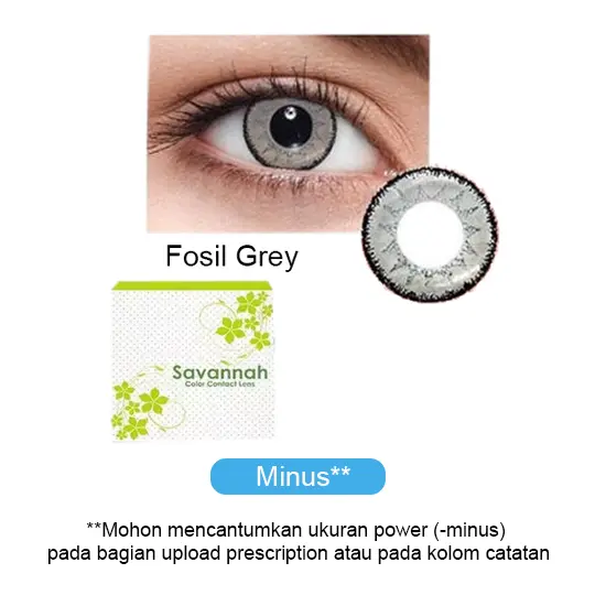 Savannah Fosil Grey merupakan softlense minus dengan masa penggunaan maksimal 6 Bulan. Softlense ini memiliki diameter 15,0 mm dan kadar air 57 %.