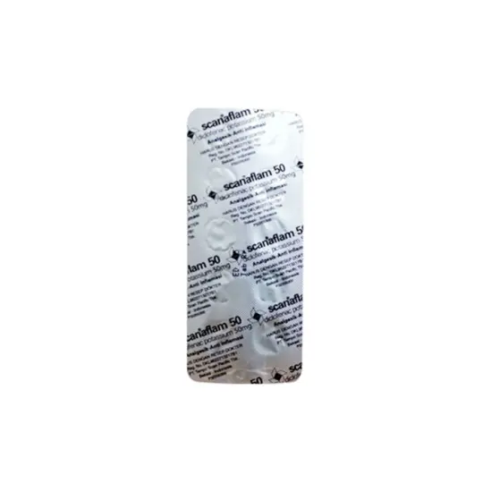 Scanaflam Tablet 50 mg adalah obat pereda nyeri yang mengandung Kalium Diklofenak. Kalium Diklofenak merupakan obat antiinflamasi nonsteroid (AINS) yang bekerja dengan menghambat produksi prostaglandin, zat yang berperan dalam proses peradangan, nyeri, dan demam, sehingga memberikan efek antiinflamasi, analgesik, dan antipiretik. Obat ini digunakan untuk meredakan nyeri ringan hingga sedang yang terkait dengan berbagai kondisi seperti nyeri haid (dismenore primer), nyeri otot dan sendi, nyeri akibat cedera atau trauma, nyeri pascaoperasi, nyeri gigi, serta kondisi peradangan lainnya.