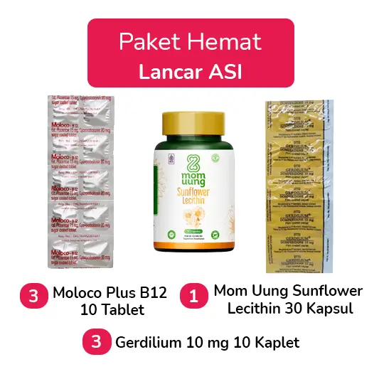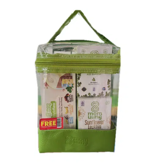 Bundling Mom Uung - Asi Booster 30 Kapsul + Sunflower Lecithin 30 Kapsul FREE Susu All Variant 3 Sachet + Pouch