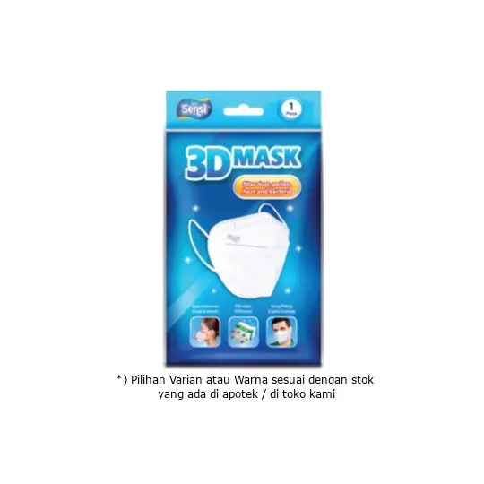 SENSI 3D MASK adalah Masker berbentuk tiga dimensi agar dapat menutup sesuai bentuk wajah dan mencegah masuknya partikerl mikro seperti bakteri, cairan, asap, dan debu. Bentuknya tiga dimensi seperti mangkuk membuat anda lebih nyaman ketika dipakai saat beraktifitas.