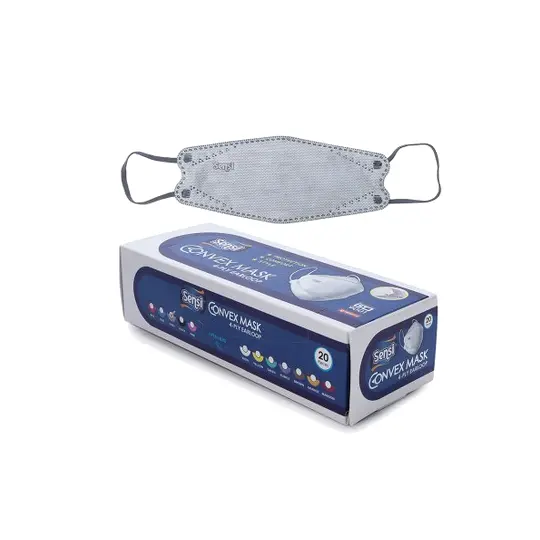 SENSI CONVEX MASK adalah masker desain terbaru yang menggabungkan unsur proteksi, kenyamanan, dan gaya. Desain 3-D Ergonomic yang memberi ruang di depan mulut, tidak menempel di bibir dan menutup yang lebih rapat dari atas hidung sampai ke dagu. Penyangga hidung dengan pola V-cut yang pas di atas tulang hidung dan lebih aman karena tidak mengandung bahan logam atau kawat. Pengait telinga (Earloop) yang terbuat dari bahan lembut dan bebas latex. Masker lebih kuat dengan 4 lapis yang mengandung filter di dalam lapisan sehingga proteksi tambahan dalam menyaring udara kotor dan menahan percikan cairan, droplet, mengurangi risiko penyebaran virus, kuman dan bakteri serta debu atau partikel mikro lainnya. Lapisan bahan yang lembut, mudah bernapas.