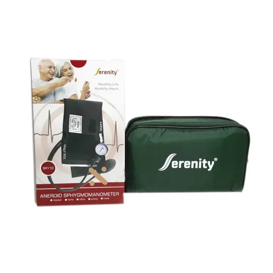 Serenity Aneroid Sphygmomanometer adalah Alat yang digunakan untuk mengukur tekanan darah yang bekerja secara manual saat memompa maupun mengurangi tekanan pada manset, dengan sistem non-invasive. Alat ini biasa disebut juga dengan tensi meter. Tensi meter ini tanpa mengunakan air raksa / mercury. Sebab resiko yang mungkin timbul saat alat pecah, sehingga mercury tumpah dan mengkontaminasi pengguna.