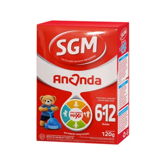SGM ANANDA 2 (6-12 BULAN) FORMULA BAYI BUBUK merupakan susu formula bayi bubuk complinutri untuk usia 6-12 bulan. Air Susu Ibu (ASI) adalah nutrisi yang terbaik dan penggunaan formula untuk bayi hanya atas rekomendasi Dokter.