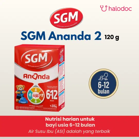 SGM ANANDA 2 (6-12 BULAN) FORMULA BAYI BUBUK merupakan susu formula bayi bubuk complinutri untuk usia 6-12 bulan. Air Susu Ibu (ASI) adalah nutrisi yang terbaik dan penggunaan formula untuk bayi hanya atas rekomendasi Dokter.