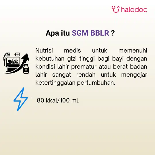 SGM BBLR 200 g adalah Pangan Olahan untuk Keperluan Medis Khusus (PKMK) yang diformulasikan untuk manajemen nutrisi bayi dengan kebutuhan medis spesifik, yaitu bayi prematur dan/atau bayi dengan Berat Lahir Sangat Rendah (BBLR). Formula ini memiliki densitas kalori yang lebih tinggi (80 kkal per 100 ml larutan) dibandingkan formula standar, karena dirancang untuk mendukung percepatan pertumbuhan. Kandungan protein, vitamin, dan mineral pada formula ini lebih tinggi untuk memenuhi kebutuhan nutrisi yang diperlukan oleh bayi dalam kondisi tersebut agar dapat mengejar kurva pertumbuhan yang normal.