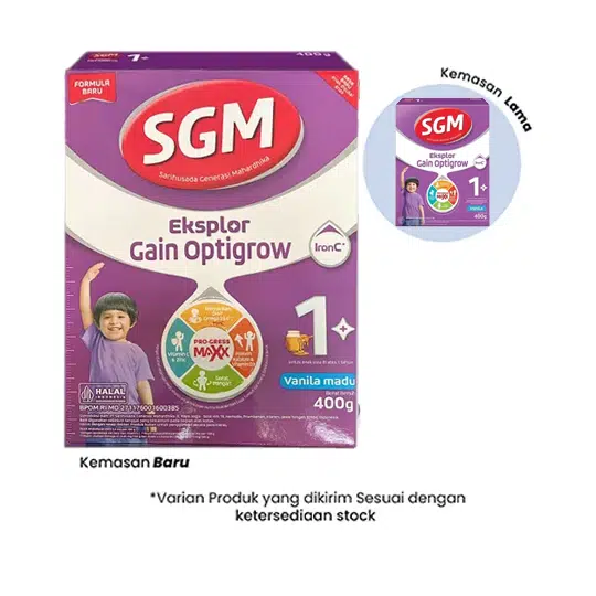 Air susu ibu (ASI) adalah makanan terbaik untuk bayi Anda. Susu formula bayi bukan pengganti Air Susu Ibu (ASI). Pemakaian SGM Eksplor Gain Optigrow atas nasehat dokter , bidan dan perawat independent berdasarkan indikasi medis.