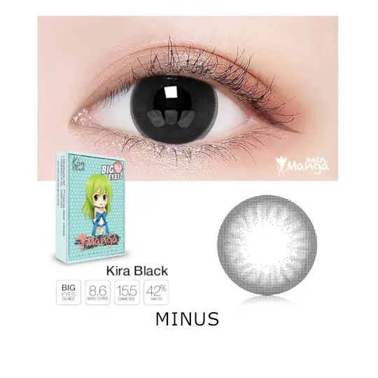 Softlens SHIN MANGA untuk penggunaan 6 Bulan. Spesifikasi Produk: Base Curve: 8.60 mm Diameter: 14.5 mm Kadar Air/Water Content: 42% Masa Pakai/Recommended Usage: 6 Bulan/Monthly Warna/Color: Warna Kira Black Ukuran/Power Range: Plano/No Minus Isi/Content: 2 buah (1 pasang)
