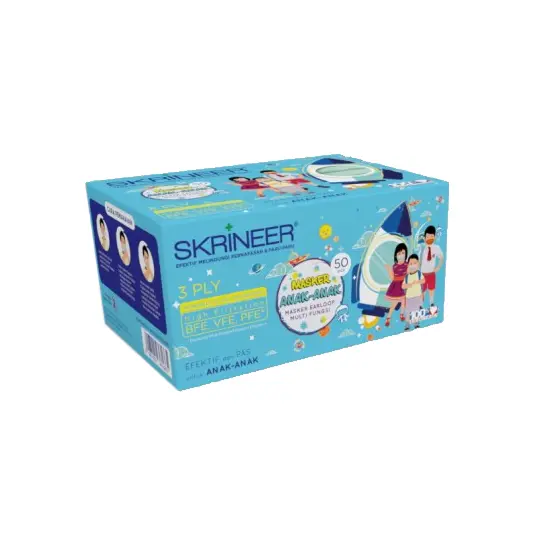 Skrineer Masker Kids 3 Ply Earloop 50 Pieces