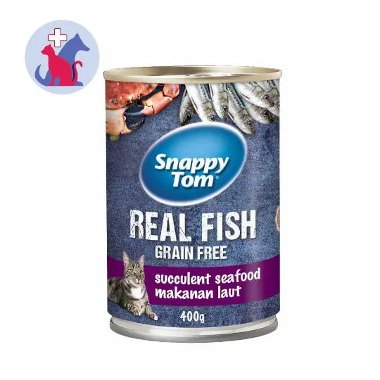 SNAPPY TOM REAL FISH GRAIN FREE SUCCULENT SEAFOOD merupakan makanan basah khusus untuk kucing dengan rasa makanan laut yang lezat agar memenuhi kebutuhan nutrisi hariannya.