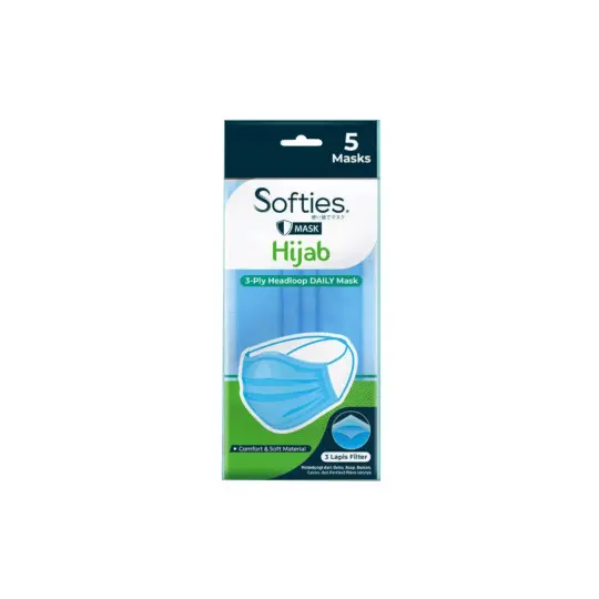 Softies Masker Hijab 3 Ply Headloop 5 Pieces