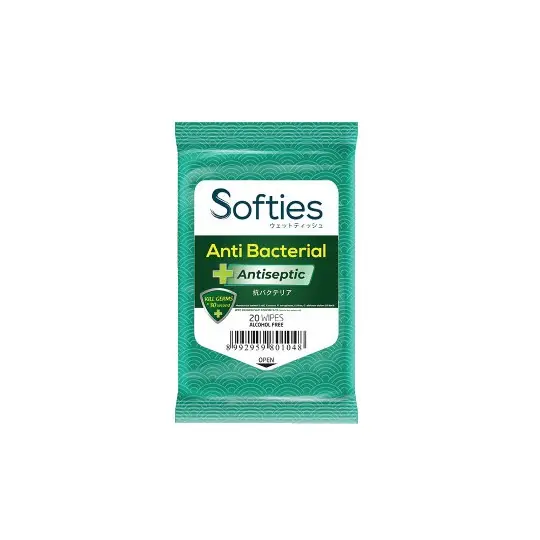 SOFTIES WET WIPES ANTI BACTERIAL adalah tisu basah anti bacterial yang dapat digunakan untuk menjaga agar tubuh tetap fresh dan bebas dari bakteri sepanjang hari.