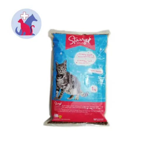 STARRY CAT FOOD merupakan makanan khusus untuk kucing dengan kibble yang renyah dan lezat yang disukai oleh kucing. Kandungan nutrisi yang seimbang diperkaya dengan mutivitamin, omega 3 & 6 serta taurine untuk kesehatan dan pertumbuhan kucing kesayangan