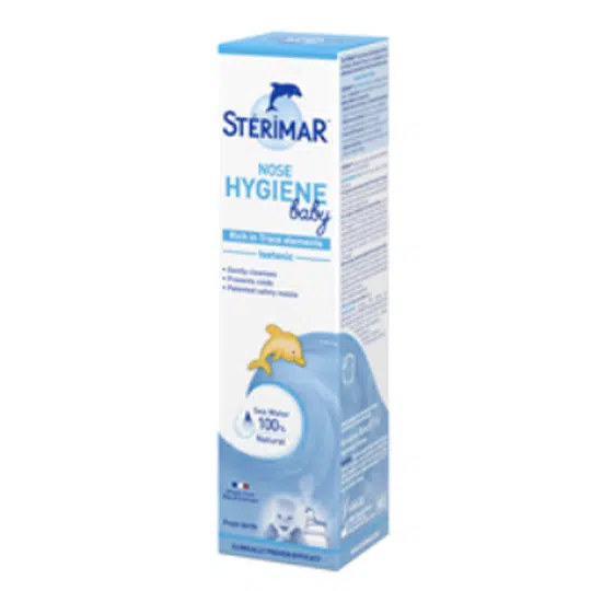 STERIMAR NOSE HYGIENE BABY 50 ML adalah semprotan hidung steril (nasal spray) yang terbuat dari air laut alami, diformulasikan khusus untuk bayi. Informasi Umum Terkait Kandungan: Mengandung larutan air laut isotonik (konsentrasi garam setara tubuh) yang lembut. Produk ini dilengkapi dengan nozzle (ujung semprotan) pengaman khusus bayi dan tekanan semprotan yang sangat halus (microdiffusion) untuk membersihkan kotoran dan lendir dengan aman tanpa menyakiti mukosa hidung bayi yang sensitif.