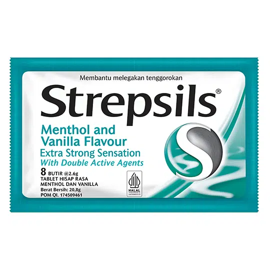 Strepsil Menthol & Vanilla 8 Tablet merupakan tablet hisap yang mengandung dua bahan antiseptic Amylmetacresol dan Dibenal yang dapat membantu melegakan tenggorokan.