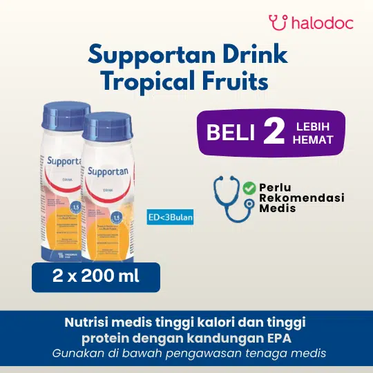 SUPPORTAN DRINK merupakan makanan cair yang dirancang khusus untuk membantu menangani kasus malnutrisi. Produk ini mengandung 1000 mg EPA dari minyak ikan, 20 gram protein, dan 300 kkal per botol yang berfungsi baik untuk membantu menurunkan peradangan/inflamasi, meningkatkan status nutrisi pada masa terapi, mencegah terjadinya kaheksia, meningkatkan massa otot, dan meningkatkan sistem imun tubuh.
