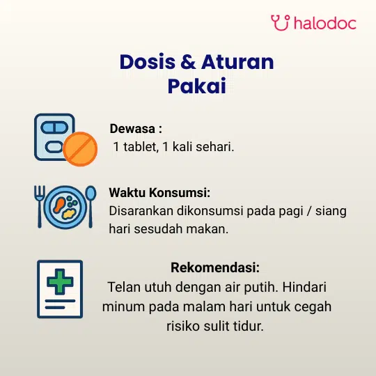 Dewasa : 1 tablet per hari atau sesuai dengan anjuran dokter