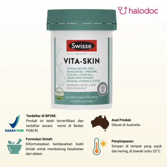 SWISSE BEAUTY VITA-SKIN diformulasikan dengan multivitamin, mineral, dan ekstrak yang membantu memelihara kesehatan.