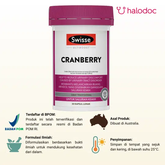 SWISSE ULTIBOOST CRANBERRY adalah dalah suplemen yang diformulasikan dengan ekstrak cranberry untuk membantu mengatasi masalah buang air kecil yang disebabkan oleh gangguan saluran kemih.