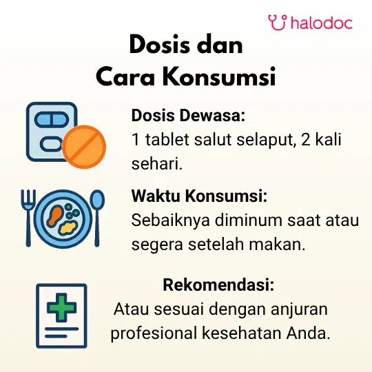 Diminum saat atau segera setelah makan, atau sesuai dengan anjuran tenaga kesehatan.