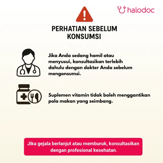 Tidak dianjurkan untuk wanita hamil dan menyusui. Jika gejalanya menetap, konsultasikan dengan tenaga kesehatan. Simpan di bawah 30°C