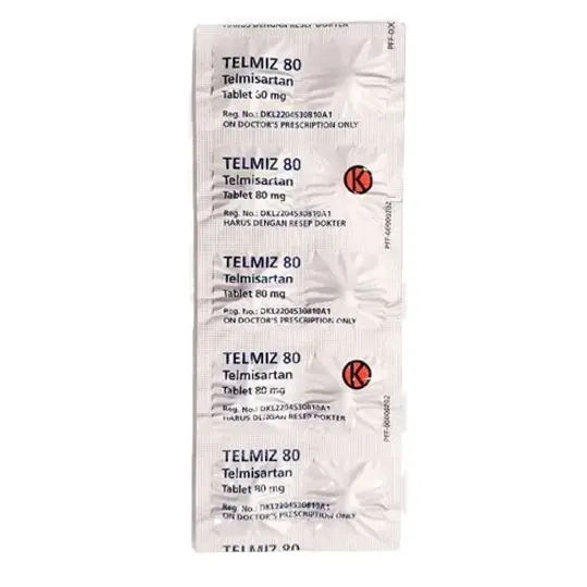 Telmiz adalah obat dengan kandungan zat aktif Telmisartan. Telmisartan termasuk dalam golongan antagonis reseptor angiotensin II (ARB) yang digunakan untuk pengobatan hipertensi esensial serta untuk pencegahan morbiditas dan mortalitas kardiovaskular. elmisartan adalah ARB yang secara efektif dan spesifik memblokir pengikatan angiotensin II ke reseptor AT1-nya. Aksi ini menghalangi efek vasokonstriksi (penyempitan pembuluh darah) dan sekresi aldosteron yang disebabkan oleh angiotensin II. Obat ini tergolong Obat Keras (HARUS DENGAN RESEP DOKTER). Dalam pembelian produk ini, Anda akan diarahkan untuk melakukan sesi edukasi singkat dengan Dokter kami mengenai penggunaan yang tepat dan aman. Sesi ini akan dikenakan biaya layanan.