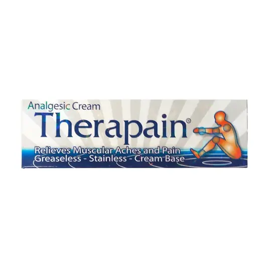 Therapain Cream merupakan krim pereda nyeri dengan kandungan metil salisilat, eugenol, menthol. Krim ini memberi manfaat membantu meredakan nyeri pada otot, sendi, nyeri, keseleo dan encok.
