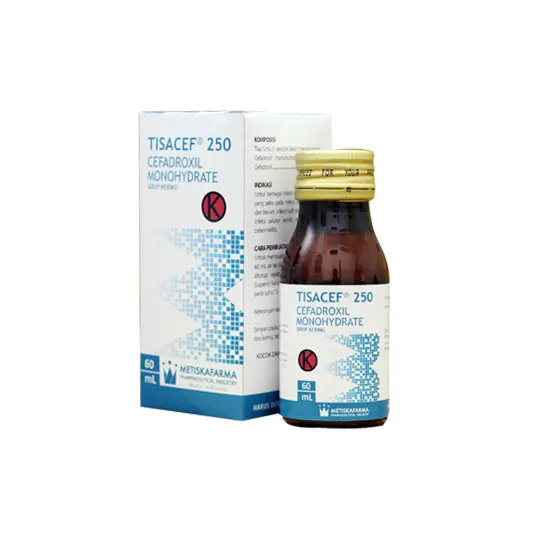 TISACEF merupakan obat mengandung Cefadroxil. Cefadroxil merupakan antibiotika golongan Cefalosporin. Antibiotika ini bekerja dengan cara mengikat 1 atau lebih protein pengikat penisilin (PBPs) yang pada gilirannya menghalangi langkah transpeptidasi akhir sintesis peptidoglikan di dinding sel bakteri, sehingga menghambat biosintesis dinding sel dan menahan perakitan dinding sel yang mengakibatkan lisis bakteri. Antibiotik ini digunakan untuk mengatasi infeksi saluran pernafasan, saluran kemih dan kelamin serta infeksi kulit dan jaringan lunak. Dalam penggunaan obat ini harus SESUAI DENGAN PETUNJUK DOKTER. Pembelian obat ini memerlukan edukasi terkait penggunaan atau pengonsumsian obat yang tepat dan aman yang akan dikenakan biaya.