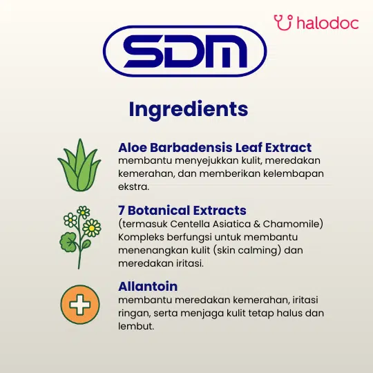 Diperkaya dengan Ceramide dan Glycerin yang membantu menjaga kelembapan dan lapisan pelindung kulit, serta bahan aktif lainnya.