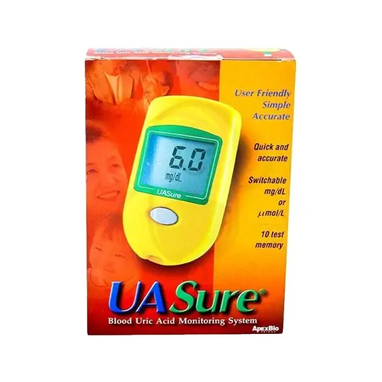 UASURE Blood Uric Acid merupakan sistem pemantauan asam urat dalam darah, menggunakan teknologi biosensor canggih. Alat kesehatan ini dilengkapi dengan fitur: