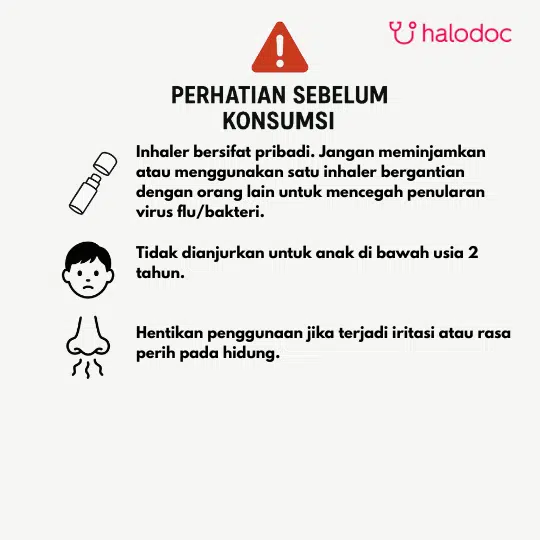 Gunakan setiap kali dibutuhkan dengan hirup dalam-dalam melalui tiap lubang hidung.