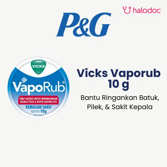 Vicks Vaporub adalah balsam gosok yang telah dikenal secara turun-temurun sebagai produk untuk meringankan gejala pilek dan batuk karena flu. Produk ini mengandung kombinasi bahan-bahan seperti Camphor, Menthol, dan Eucalyptus Oil yang memberikan sensasi hangat, melegakan, dan menenangkan.