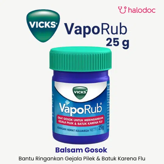 Vicks Vaporub adalah balsam gosok yang telah dikenal secara turun-temurun sebagai produk untuk meringankan gejala pilek dan batuk karena flu. Produk ini mengandung kombinasi bahan-bahan seperti Camphor, Menthol, dan Eucalyptus Oil yang memberikan sensasi hangat, melegakan, dan menenangkan.