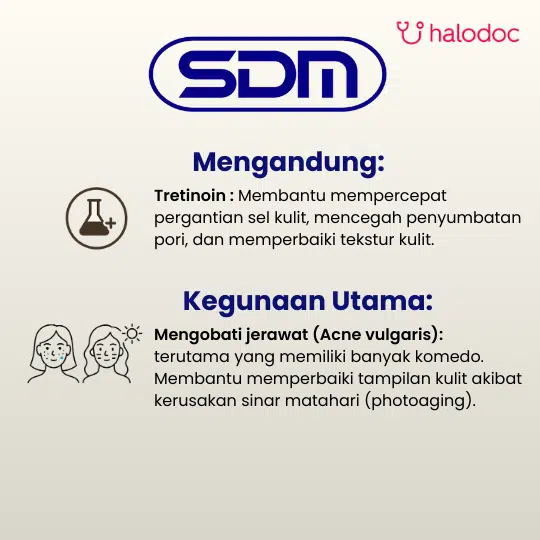 HARUS DENGAN RESEP DOKTER. Hanya untuk pemakaian luar. Obat ini dapat menyebabkan iritasi kulit (kemerahan, kering, mengelupas) pada awal penggunaan. Wajib menggunakan tabir surya (sunscreen) dengan SPF minimal 30 setiap pagi karena kulit menjadi sangat sensitif terhadap matahari selama penggunaan produk ini. Kategori Kehamilan: X.