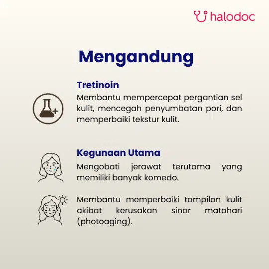HARUS DENGAN RESEP DOKTER. Hanya untuk pemakaian luar. Obat ini dapat menyebabkan iritasi kulit (kemerahan, kering, mengelupas) pada awal penggunaan. Wajib menggunakan tabir surya (sunscreen) dengan SPF minimal 30 setiap pagi karena kulit menjadi sangat sensitif terhadap matahari selama penggunaan produk ini. Kategori Kehamilan: X.