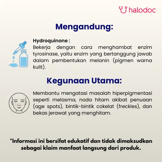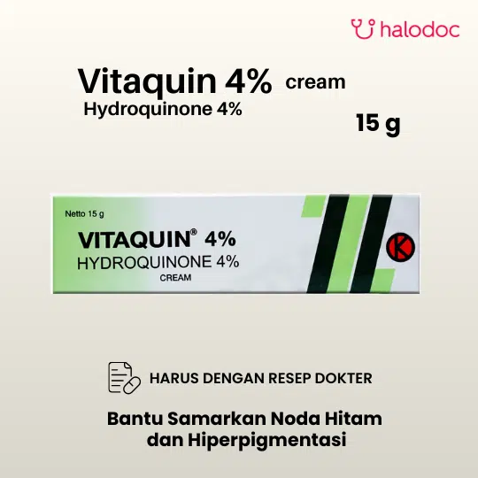 Vitaquin/Melanox Forte 4% Cream 15 g produk yang mengandung Hydroquinone. Hydroquinone adalah bahan aktif yang digunakan untuk mengatasi masalah pigmentasi kulit.