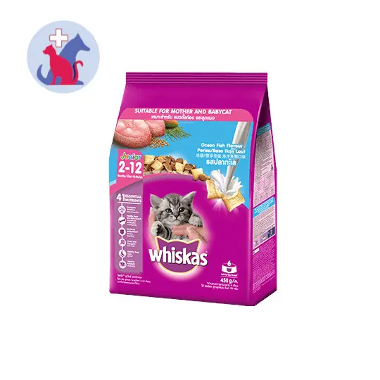 WHISKAS JUNIOR RASA OCEAN FISH merupakan makanan khusus untuk anak kucing agar memenuhi kebutuhan nutrisi kucing pada setiap masa kehidupannya