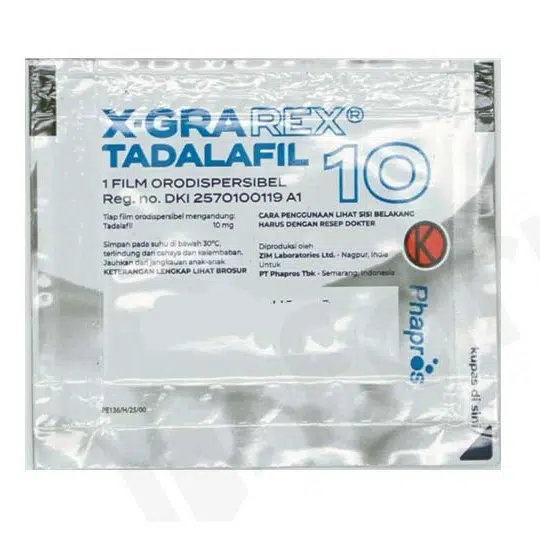disfungsi ereksi dan perbesaran prostat (Benign Prostatic Hyperplasia). Obat ini mengandung Tadalafil 10 mg. X-Gra Rex memiliki bentuk sediaan Oral Dissolving Film (ODF). Bentuk sediaan ODF ini, memiliki bentuk yang tipis dan fleksibel, sehingga memudahkan dalam penyimpanan dan nyaman digunakan oleh pasien yang mengalami kesulitan menelan tablet. Selain itu, bentuk sediaan ODF mudah untuk menempel pada rongga mulut, cepat terdisolusi (larut) tanpa menggunakan air, dan rapid release.