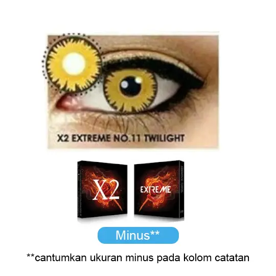 Softlense X2 EXTREME merupakan softlense dengan masa penggunaan selama 6 Bulan. Softlense ini memiliki 15 pilihan warna yaitu Vampire, Volturi, Eclipse, Darth Maul, Avatar, Voldemort, White Zombie, Raptor, Viper, Dragon Eyes, Twilight, Hellraiser, Cat Eye, Ceshire Cat, dan Black Out. Softlense ini memiliki diameter 14.5 mm dan kadar air 42% sehingga nyaman digunakan.