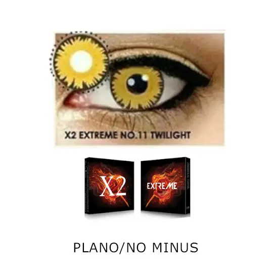 Softlense X2 EXTREME merupakan softlense dengan masa penggunaan selama 6 Bulan. Softlense ini memiliki 15 pilihan warna yaitu Vampire, Volturi, Eclipse, Darth Maul, Avatar, Voldemort, White Zombie, Raptor, Viper, Dragon Eyes, Twilight, Hellraiser, Cat Eye, Ceshire Cat, dan Black Out. Softlense ini memiliki diameter 14.5 mm dan kadar air 42% sehingga nyaman digunakan.