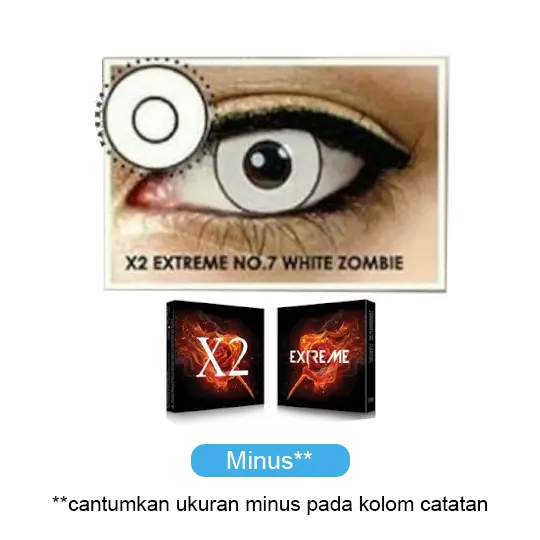 Softlense X2 EXTREME merupakan softlense dengan masa penggunaan selama 6 Bulan. Softlense ini memiliki 15 pilihan warna yaitu Vampire, Volturi, Eclipse, Darth Maul, Avatar, Voldemort, White Zombie, Raptor, Viper, Dragon Eyes, Twilight, Hellraiser, Cat Eye, Ceshire Cat, dan Black Out. Softlense ini memiliki diameter 14.5 mm dan kadar air 42% sehingga nyaman digunakan.