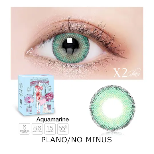 X2 Glam Aquamarine 2 Color Softlens Plano/No Minus
