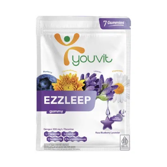Youvit Ezzleep adalah suplemen gumi (gummies) yang diformulasikan dengan kombinasi asam amino (L-Theanine) dan ekstrak bahan alami (herbal) yang secara tradisional dikenal memiliki efek menenangkan. Produk ini bertujuan untuk membantu relaksasi dan meningkatkan kualitas tidur.