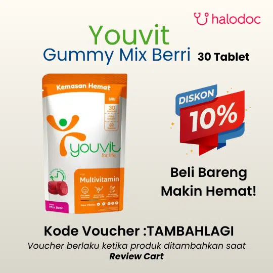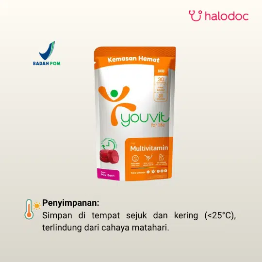 Youvit Gummy Rasa Mix Berri 30 Tablet adalah suplemen kesehatan multivitamin dalam bentuk tablet kunyah (gummy) untuk membantu memelihara daya tahan tubuh dan menjaga kesehatan.