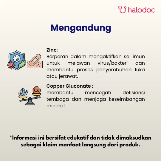 Sebagai suplemen untuk membantu memenuhi kebutuhan Zinc dan memelihara daya tahan tubuh.
